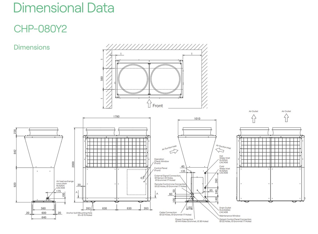 With a heating performance of 80 kW, the CHP- 080Y2 was developed to reduce high hot water supply costs and large space requirements that inevitably occur in facilities requiring a large hot water supply.
