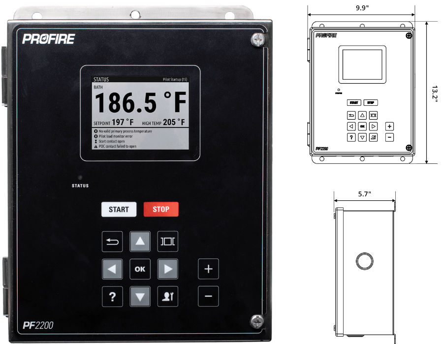 1The PROFIRE PF2200-SB controller has been specifically designed to enhance the performance and control of a wide array of natural draft fire tube applications. The PF2200-SB delivers the most powerful yet simple user experience possible. Perfect for most Atmospheric Water Bath heaters/burners. Suitable for verification to NZ gas standards. Looks after heater temp control, Interlocks, Fault output, Burner/pilot/Control valves and flame supervision functions.